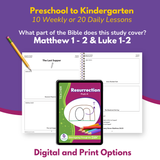 Take your little ones one step beyond the basics of the nativity story! This interactive Bible study helps preschool and kindergarten students follow Mary and Joseph from Nazareth to Bethlehem, into Egypt, and back again—all while learning about the people who played key roles in the birth of Jesus.
