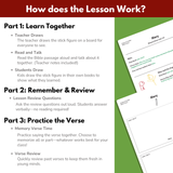 Each lesson includes drawing time, memory verses, and review questions to keep young learners engaged and help them remember what they’ve learned.