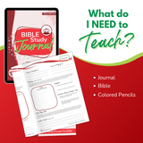 Bible Study Journal: Student journal with 20 daily lessons, timeline, memory verses, drawing space, and prayer reflections. Traceable version available for younger students. 38 pages.