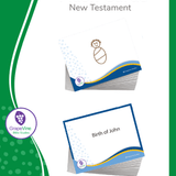 The New Testament timeline flashcards are a convenient way to practice the timeline. On the front side of the cards, you will find the stick figure images from the timeline. On the back of the cards, you will find the title and lines on which you can write memory verses, facts, or other information.